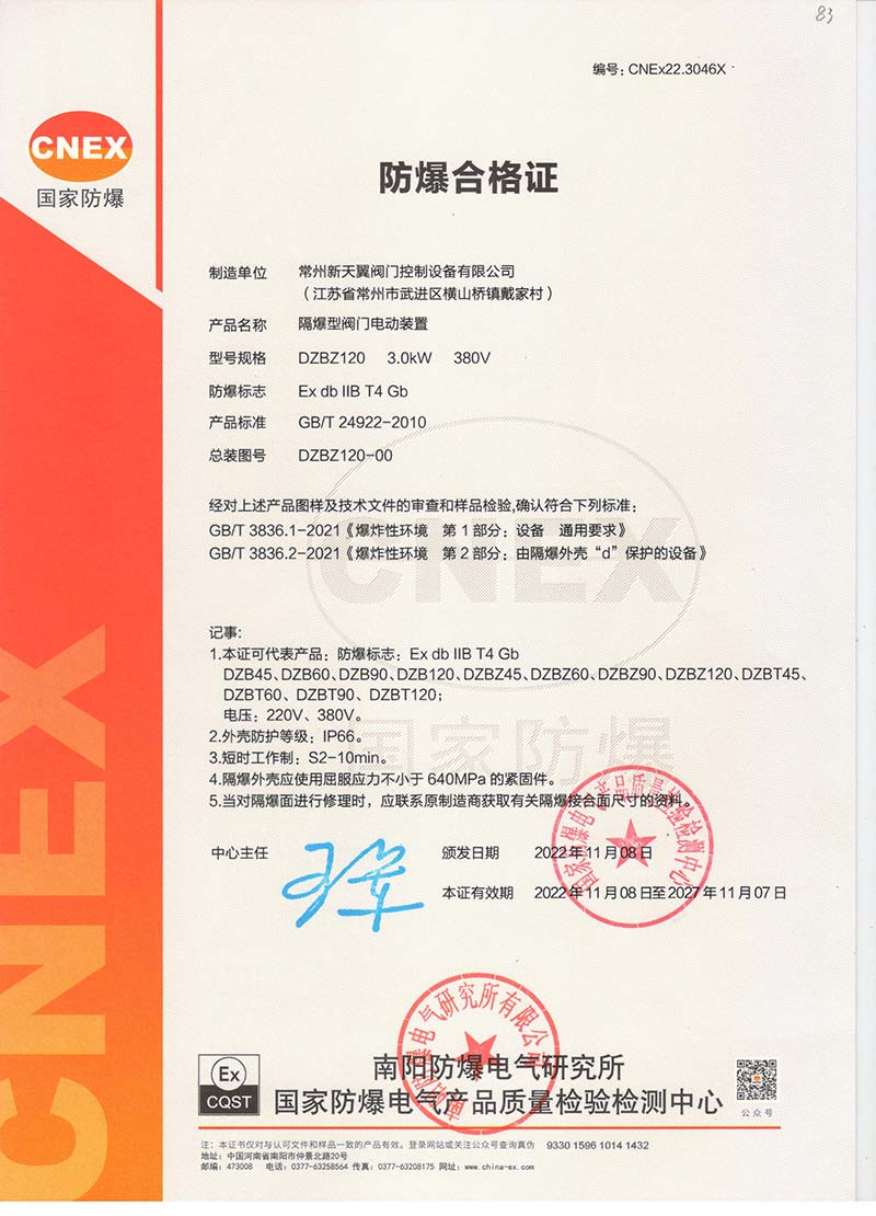 隔爆型DZB 國家強制性產品認證BT4證書108.2